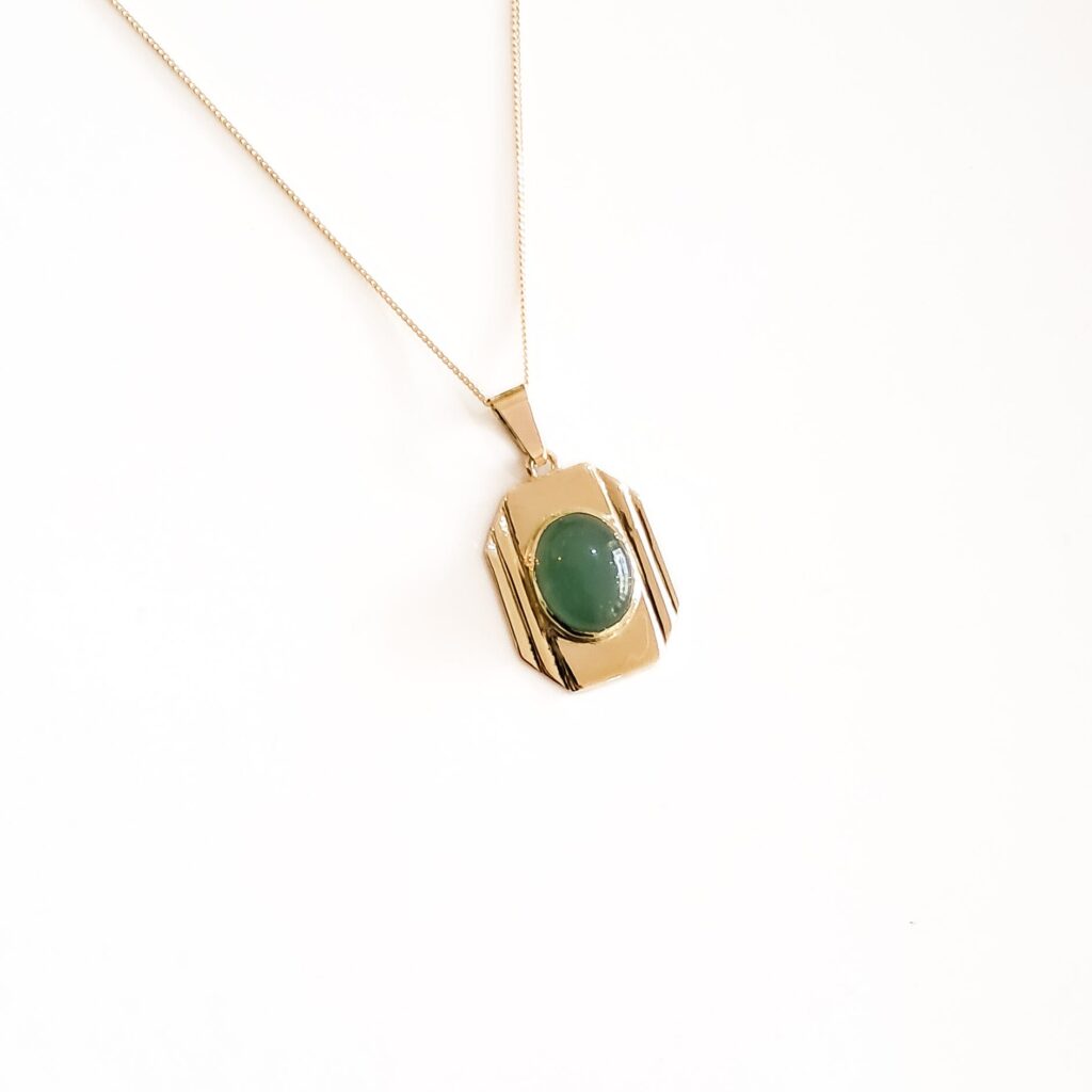Bestel deze Hanger Art Deco in geel goud met jade eenvoudig via de webshop en voeg een tijdloos, elegant sieraad toe aan je collectie.