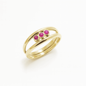 De oorspronkelijke trouwring is zorgvuldig omgevormd tot een overslagring. In dit ontwerp lijkt het goud zich om de vinger te vouwen, als een symbolische omhelzing. De vloeiende lijnen geven de ring een zachte, organische uitstraling. Door het hergebruik van de originele ring blijft niet alleen het materiaal behouden, maar ook de emotionele waarde die eraan verbonden is.