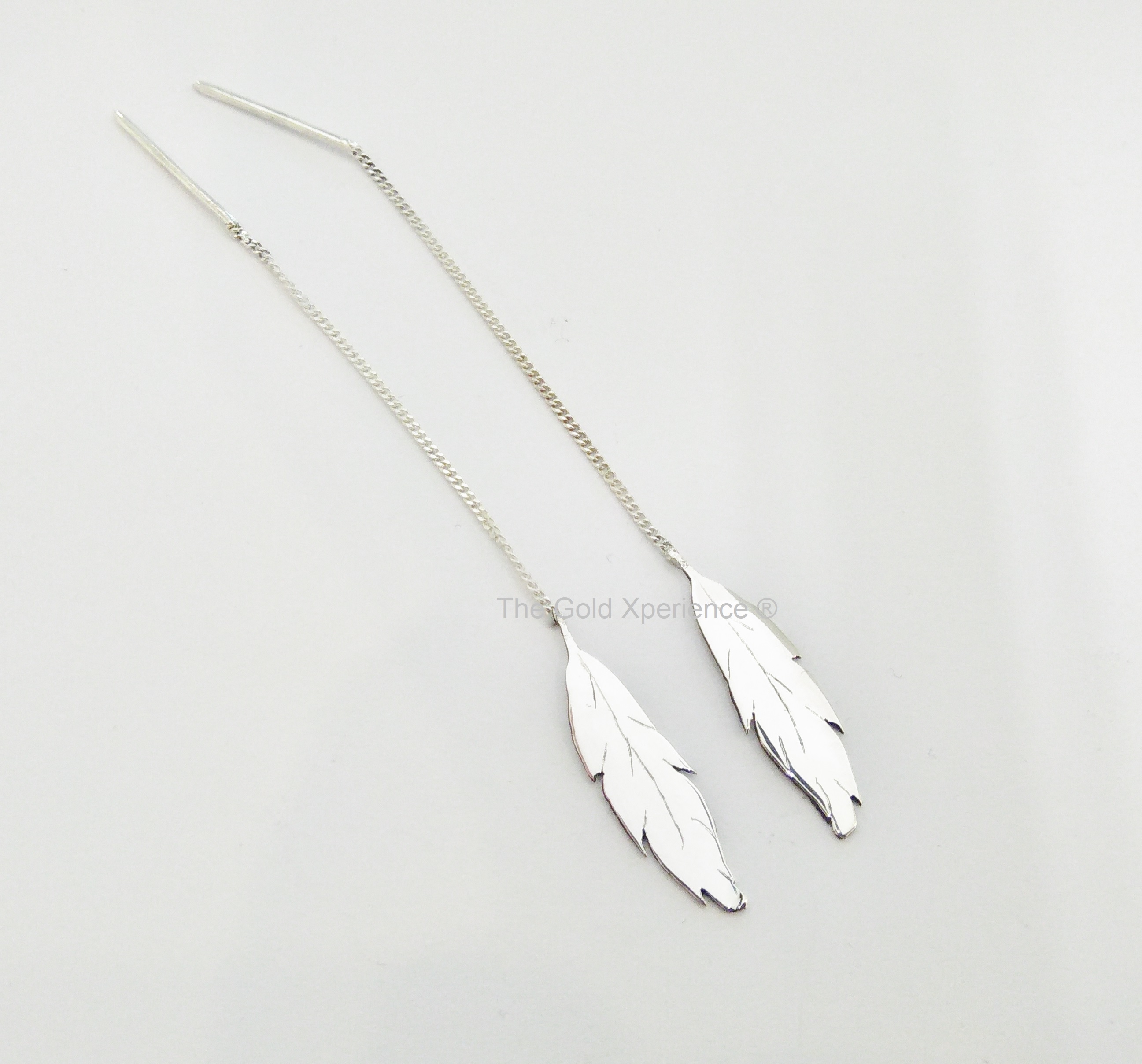 Subtiele doortrekoorbellen van zilver in de vorm van een veertje. Elegant, lichtgewicht en comfortabel handgemaakt sieraad, perfect om cadeau te geven.